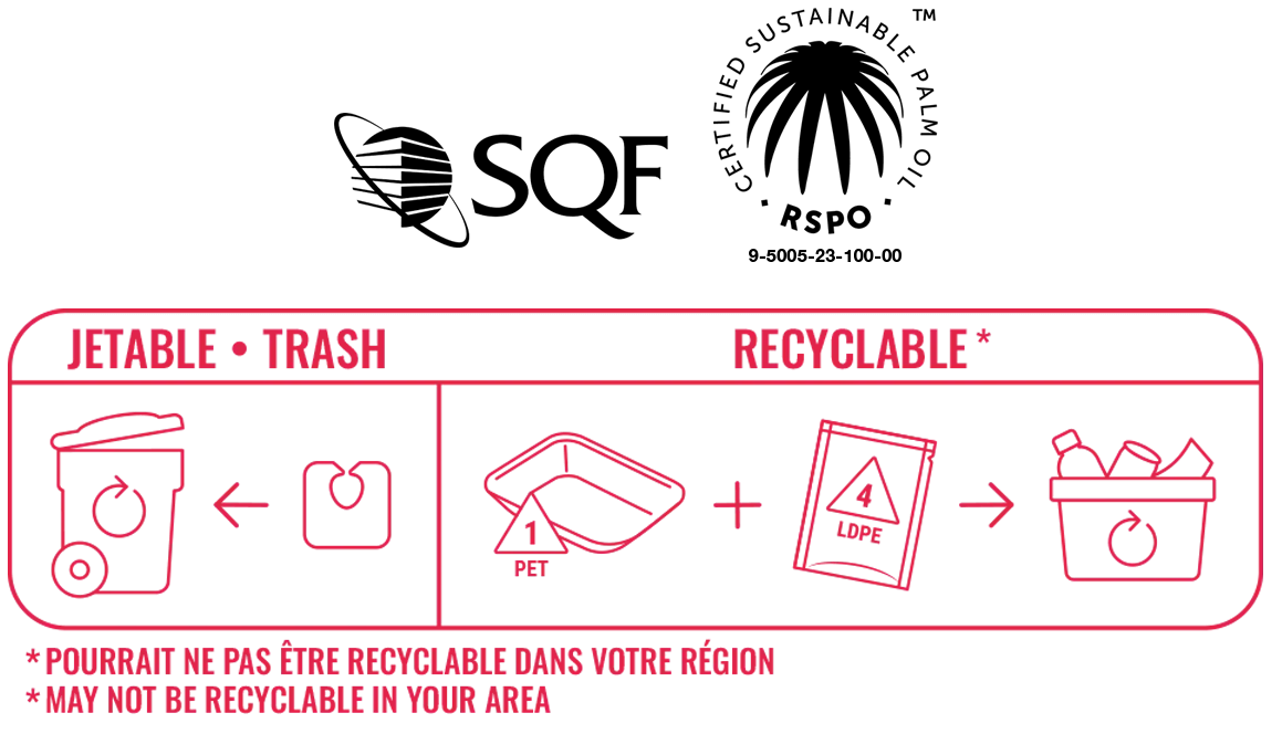 Toutes nos gaufres sont faites à base d’arômes naturels et sans ajout d’agents de conservation. Nous sommes fiers de participer à la protection de l’environnement avec des emballages écoresponsables et avec de la margarine faite à base d’huile de palme durable (RSPO).